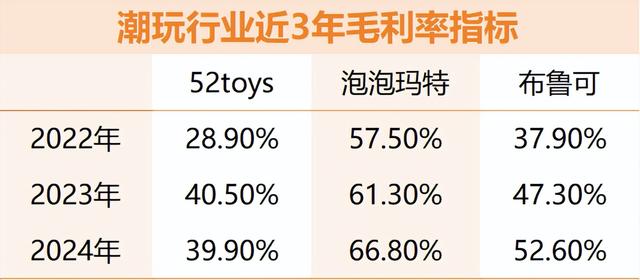 毛利率方面,52TOYS同样处于落后的位置。