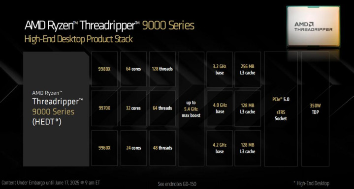 AMD在COMPUTEX 2025上正式宣布了Zen5架构的AMD锐龙线程撕裂者PRO 9000WX/9000X系列处理器,其中针对企业用户的AMD锐龙线程撕裂者PRO 9000WX系列已经正式发售,而面向HEDT和内容创意设计工作站的9000X系列,也终于在7月30日迎来了性能解禁,并会在7月31日正式发售。已经强到没对手的锐龙线程撕裂者系列这次会给我们带来什么样的震撼呢?相信高性能计算用户、发烧级玩家和专业设计师都非常关心它的表现吧,那么现在就随我们来一探究竟。