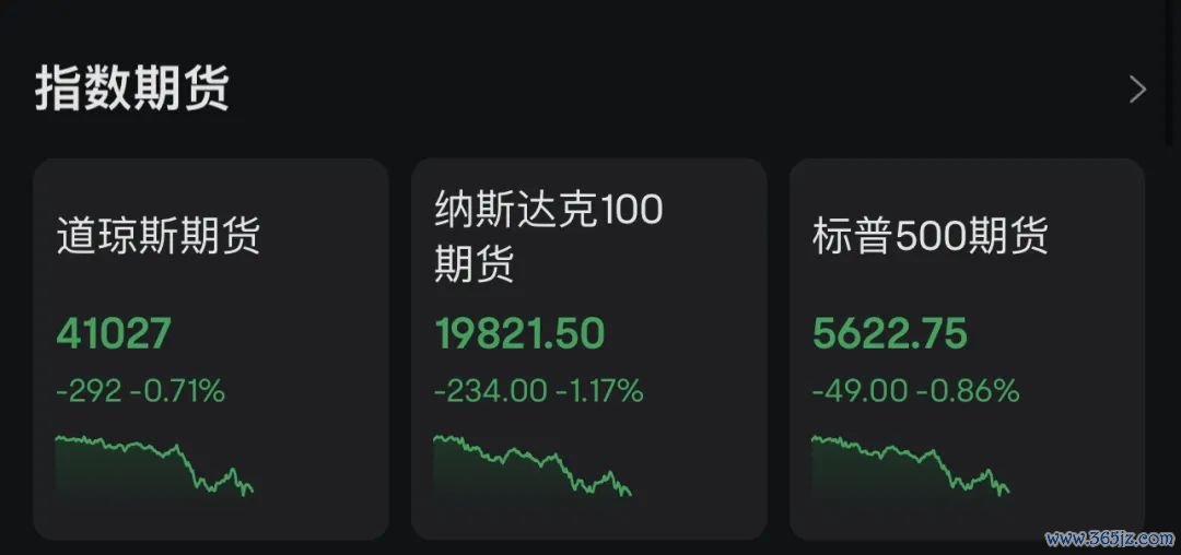 美股市场方面,盘前美股三大指数期货悉数下跌。截至发稿,道琼斯指数期货跌0.71%,纳斯达克指数期货跌1.17%,标普500指数期货跌0.86%。