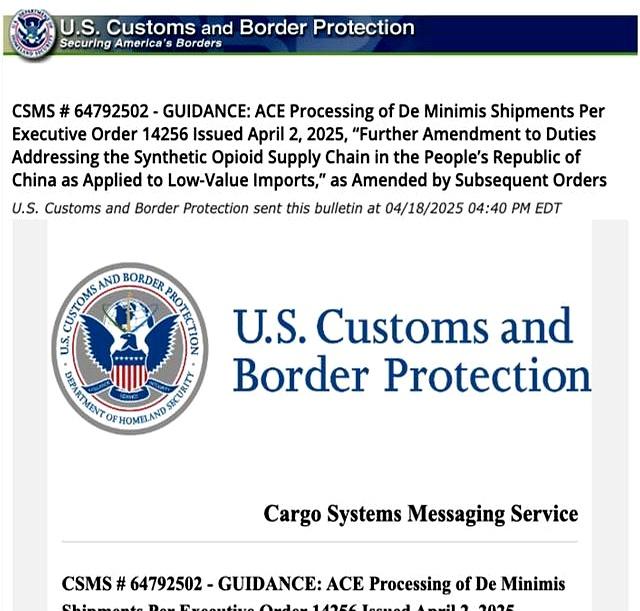 美国那边要取消800美元以下小包裹的免税政策,2025年5月2日正式生效。